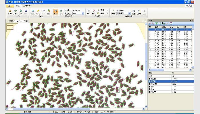 ★配大景深的1400萬像素分辨率的彩色數碼拍攝儀,及超薄的背光光源板,具有相機畫面畸變、背光板均勻性的自動矯正特性,有效減小尺寸測量誤差。拍照分析的種粒直徑0.25~20mm。稻種的實粒與秕谷需經風選,再分別計數分析。配中晶ScanMaker i600上下LED雙光源彩色掃描儀,能自動聚焦、亮度可調,實現600dpi以上光學分辨率的均勻背光、暗視野成像,最大色彩深度48位。