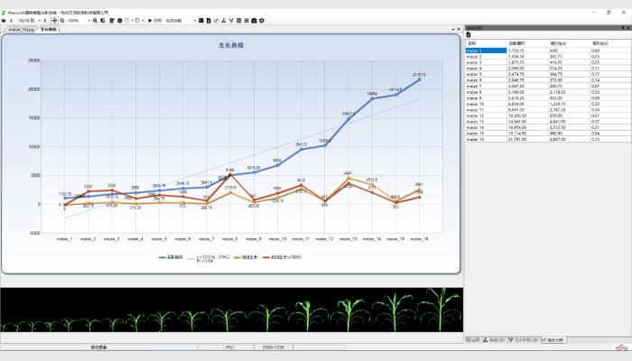 (8)其它:不同生長時期自動批量化處理分析,多植株網(wǎng)格分析,直線、角度等幾何測量,各測量結(jié)果可編輯修正。